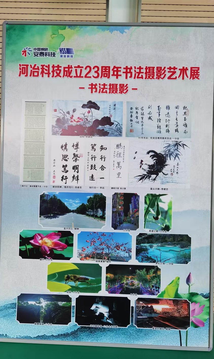 結(jié)合主題教育活動,回顧公司二十三年歷程,圍繞公司生產(chǎn)經(jīng)營活動,豐富企業(yè)文化內(nèi)涵,激勵員工斗志,表彰先進樹立榜樣,組織征文、書畫攝影展, 共收到征文36篇、書畫作品7篇、攝影作品20余篇,以多種形式,反映了河冶科技改革發(fā)展建設(shè),員工生產(chǎn)學(xué)習(xí)生活內(nèi)容,展現(xiàn)職工風(fēng)采和企業(yè)文化理念。